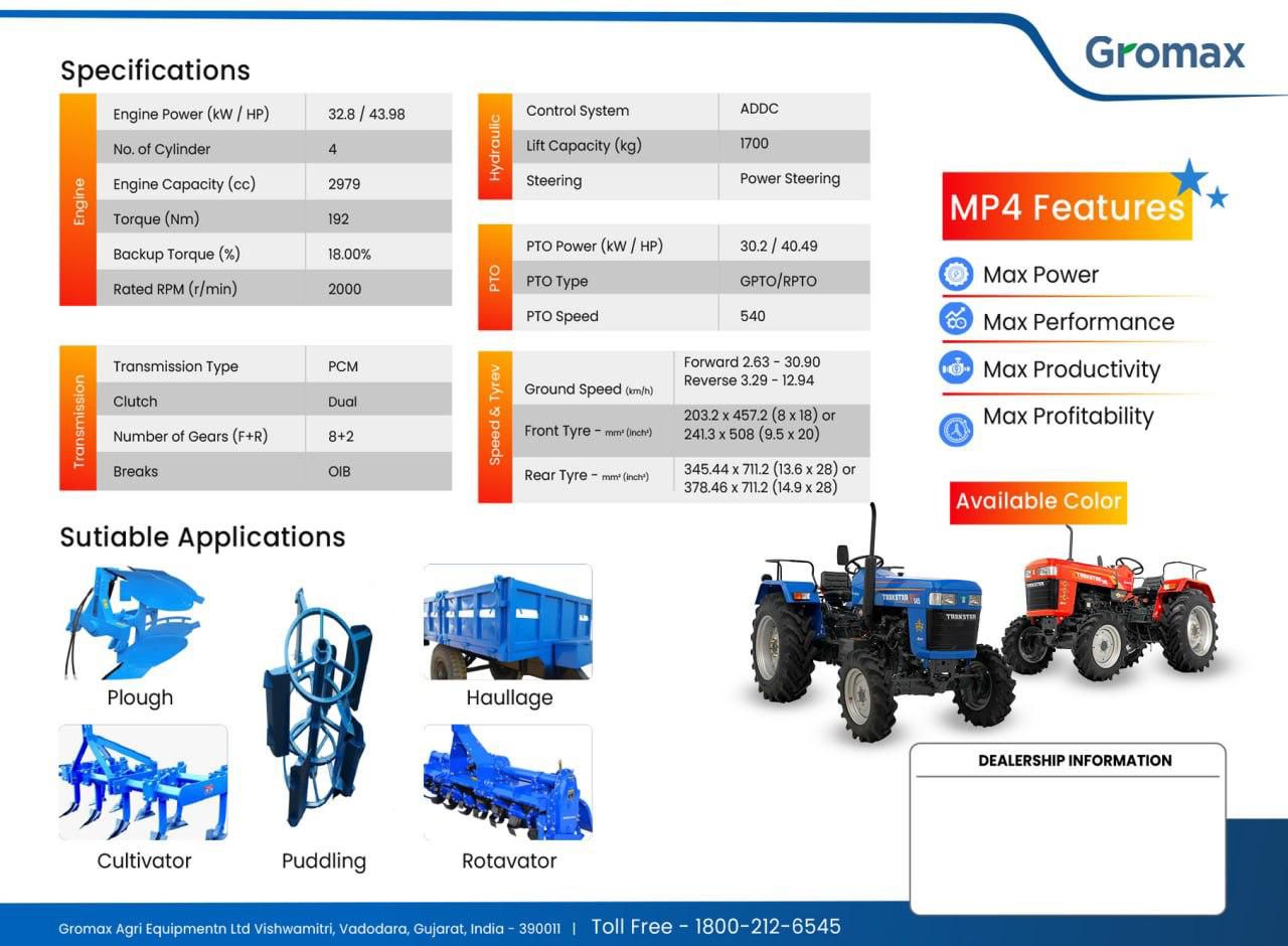 We are Gromax Agri Equipment Limited, specializing in the sale of Gromax range of Tractors and Agricultural Implements. We are taking care of distributing these products in INDIA, providing customer support, and managing after-sales services. We focus on offering high-quality agricultural machinery, catering to the needs of farmers and agricultural businesses, and maintaining strong relationships with both Gromax Dealers and our end customers.