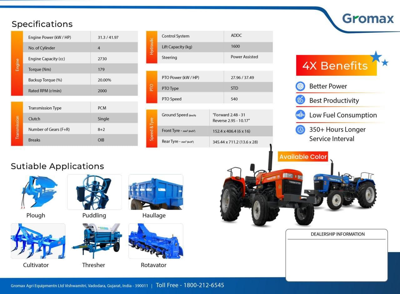 We are Gromax Agri Equipment Limited, specializing in the sale of Gromax range of Tractors and Agricultural Implements. We are taking care of distributing these products in INDIA, providing customer support, and managing after-sales services. We focus on offering high-quality agricultural machinery, catering to the needs of farmers and agricultural businesses, and maintaining strong relationships with both Gromax Dealers and our end customers.