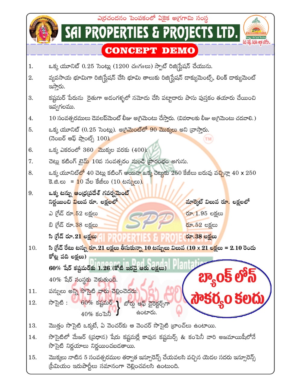 Sales Officer Sai Properties & Projects LimitedTo be a world-class Organization that empowers and enriches the farming community and also to provide pollution-free, To save nature and create a comfortable environment for future Generations.